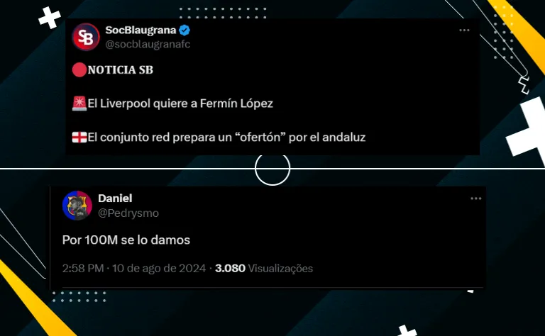 Segundo informações do portal internacional SocBlaugrana, Fermín tem contrato com o Barcelona até 2027 e sua cláusula é de 400 milhões de euros. O Barça não quer vender, o que obriga o Liverpool a pagar o valor, se quiser tirar o jovem de Catalunha para reforçar o time de Slot, que faz grande pré-temporada.