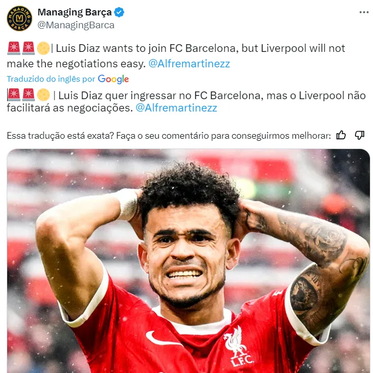 O Liverpool entende que Díaz faz parte do presente e, sobretudo, do futuro do clube, que passará por uma grande mudança na próxima temporada, com a saída de Klopp e a chegada de um novo técnico.