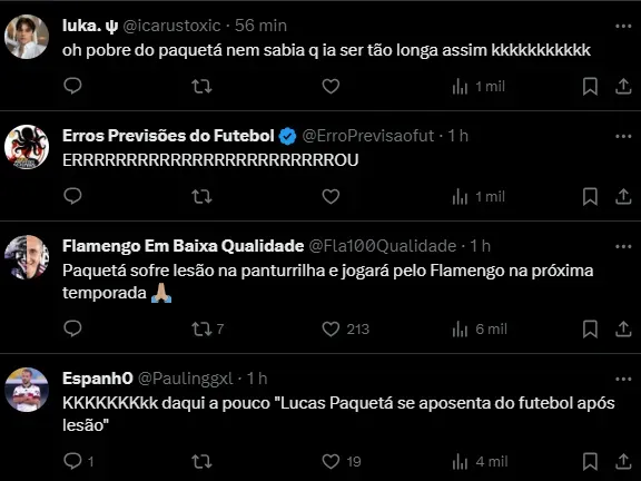 Entretanto, no exterior, há quem diga que o brasileiro pode ficar até dois meses em recuperação. Esse desencontro de informações incomodou Paquetá, que imediatamente se posicionou.