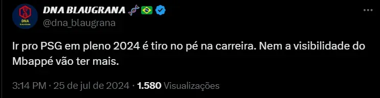 “Ele é melhor que Mbappé no que se diz respeito para trabalhar, ajuda na parte defensiva, podendo correr até 40 metros para ajudar o companheiro quando está sem a bola”, teria dito Luis Enrique ao clube francês, segundo o Defensa Central.