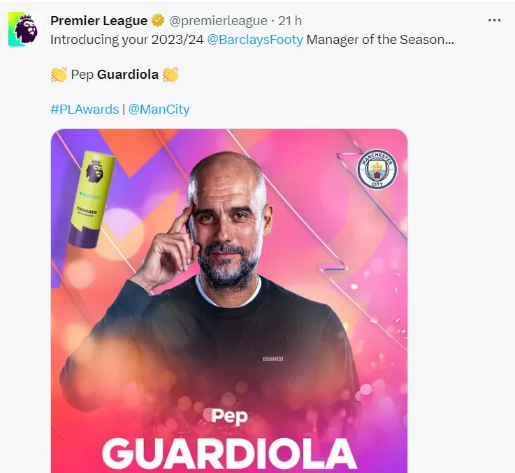 Campeão inglês da temporada e na final da Fa Cup, é certo que Guardiola vai cumprir seu último ano de contrato com o Manchester City, mas o mesmo deixou em aberto sua permanência para a temporada de 2025-26. “Hoje estou mais perto de sair do que ficar”, disse o renomado treinador.