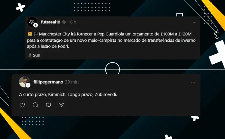 Alguns jogadores que atuam como primeiro volante estão sendo ventilados no Manchester City. Dos nomes, entre Kimmich, do Bayern, e Zubimendi, da Real Sociedad, o brasileiro Bruno Guimarães parece ser o melhor avaliado.