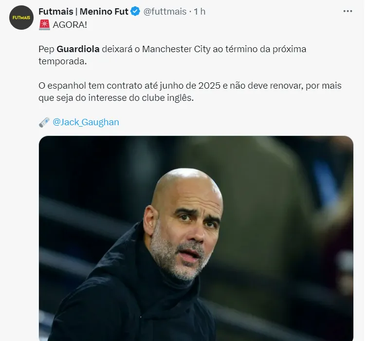 Segundo informação exclusiva do jornal britânico Daily Mail, Pep Guardiola deve deixar o Manchester City no final da próxima temporada, ou seja, no verão de 2025, quando seu contrato chegará ao fim.