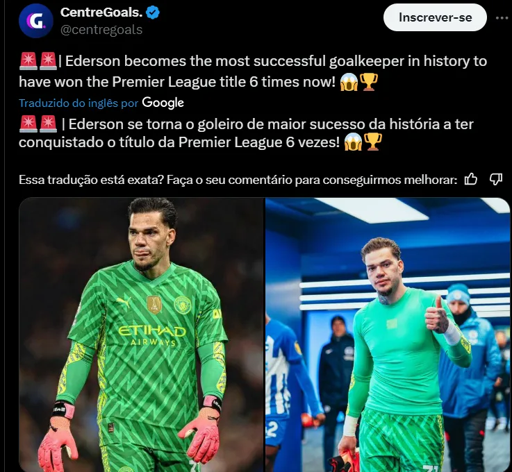 Relatos da imprensa internacional dão conta que Ederson tem um acordo para jogar no Al-Nassr, que conseguiu convencê-lo a deixar a Inglaterra diante de um enorme salário. Resta, então, o acordo final com o City.