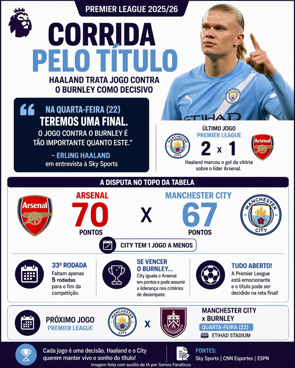 Haaland analisou a importância do próximo confronto. “Na quarta-feira (22) teremos uma final. O jogo contra o Burnley é tão importante quanto este”, afirmou em entrevista à Sky Sports, repercutida pela CNN Esportes.