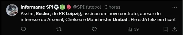 Isso porque o próprio RB Leipzig acertou a renovação de Benjamin Sesko. O atacante de 21 anos renovou seu contrato e deve permanecer no clube alemão até junho de 2029.