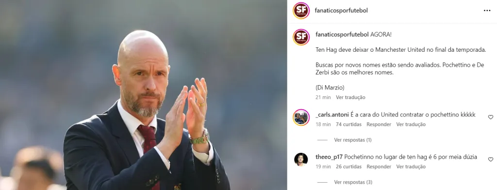 O clube vermelho terminou apenas na 8º posição da Premier League e não estará presente nem na disputa da Europa League. A péssima campanha na liga inglesa pode ter relação com a decisão de demitir Ten Hag.