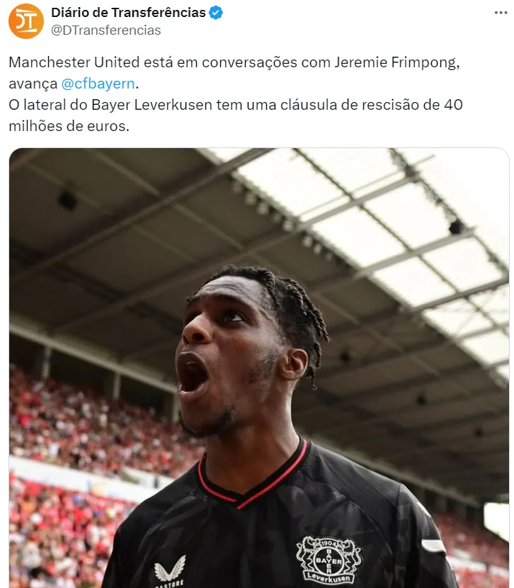 O Manchester United está ciente da multa rescisória de 40 milhões de euros (R$ 240 milhões) de Frimpong com o Bayer Leverkusen, segundo informações de Christian Falk. Os primeiros contatos são apenas informais.