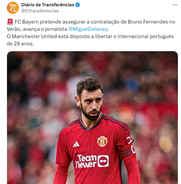 O Manchester United está disposto a vender o futebol do português Bruno Fernandes na próxima temporada do futebol europeu. Prestes a ficar fora das competições da UEFA, o jogador também está aberto a sair.