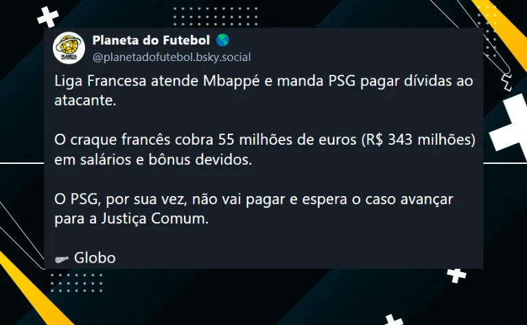 Kylian e PSG disputam uma briga intensa nos bastidores. O novo reforço do Real Madrid cobra 55 milhões de euros devido a atrasos de salários e bônus. Na França, o PSG foi obrigado a pagá-lo, mas parece não estar disposto a fazer isso.