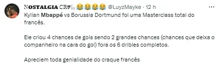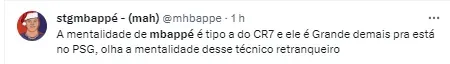 Já no final da partida, ficou claro que o time do PSG sabia do resultado e colocou “pé no freio”, vindo a irritação de Mbappé, que queria mais ímpeto da equipe para buscar a vitória. Imagens da transmissão mostraram o atacante irritado e balançando os braços, reclamando. Ele passou rapidamente pelo técnico da equipe, Luis Henrique, sem trocar muitas palavras.
