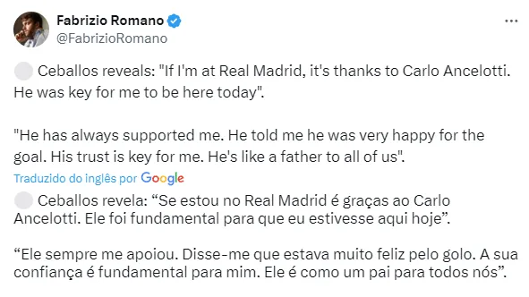 Revelado pelo próprio Betis, o atleta tem contrato até o meio de 2027 com o time do Santiago Bernabéu. Ele que, na carreira, ainda soma uma boa passagem com as cores do Arsenal.