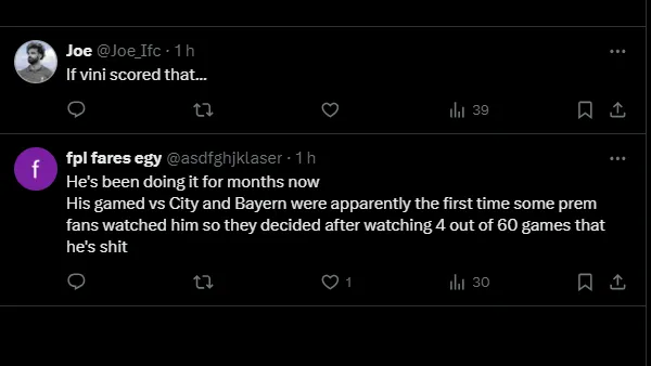 Bellingol não fez o dele, apesar de ter tido chance após passe açucarado de Vinícius Jr. No entanto, deixou o novo camisa 9 do clube merengue em ótimas condições para anotar o tento na estreia.