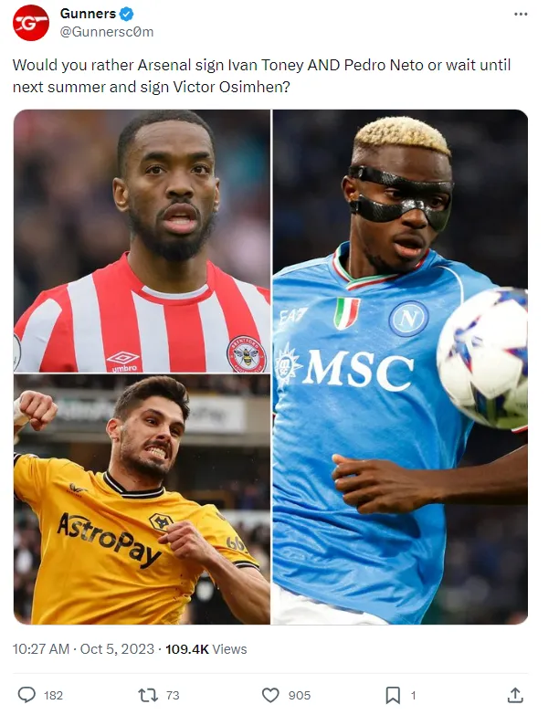 O Arsenal está determinado a manter o bom desempenho na Premier League e busca fortalecer ainda mais seu elenco para brigar pelo título na temporada atual, além de visar uma campanha sólida na Liga dos Campeões.