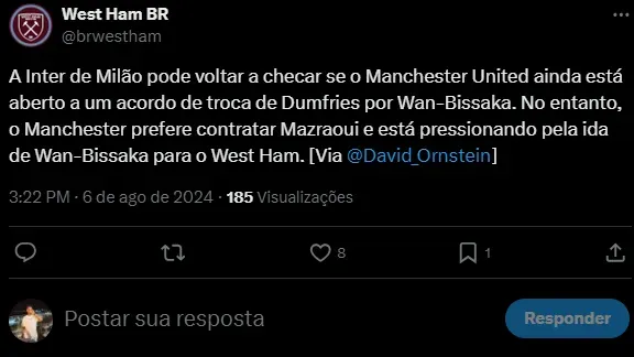 O destino mais plausível para o atleta dos Red Devils é na Premier League mesmo. A equipe do West Ham monitora a situação de perto e sabe que precisa comprá-lo para o time de Old Trafford buscar o substituto.