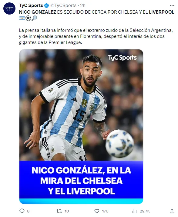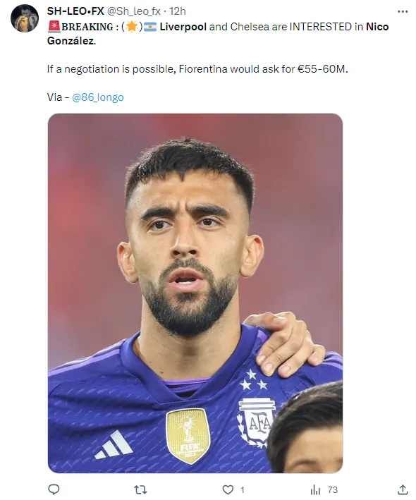 A rivalidade entre esses dois gigantes do futebol inglês promete se estender além das quatro linhas, pois, de acordo com informações do CalcioMercato.com, tanto o Liverpool quanto o Chelsea estão interessados no talento de Nico González, jogador da Fiorentina.