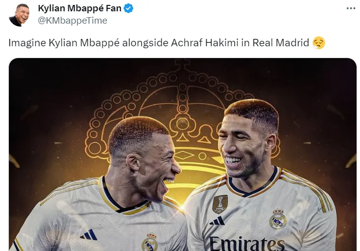 O Real Madrid tem negociações avançadas com Mbappé, parceiro e amigo pessoal de Hakimi. A chegada do craque da camisa 7 poderia ajudar o time merengue na operação pelo lateral.