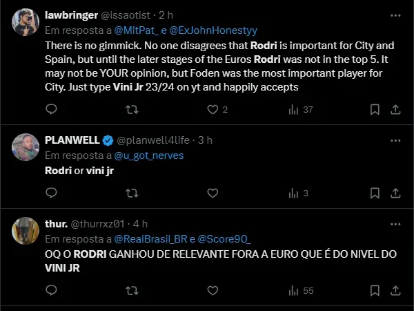 Vini Jr, do Real Madrid, e Rodri, do Manchester City, são cotados pela imprensa internacional para ganhar a próxima edição do Prêmio Bola de Ouro. Os torcedores brasileiros querem que vá para o camisa 7.