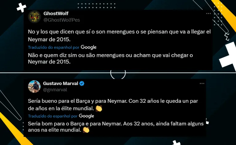 Por outro lado, há quem é contra ver Neymar vestindo as cores do Barça. “Não, e quem é a favor são torcedores do Real Madrid ou acham que ele é o mesmo jogador de 2015″, apontou um torcedor.
