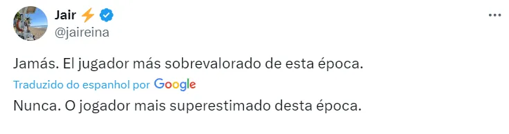 “Jamais. Jogador mais superestimado da época”, aponta outro torcedor merengue. Apesar dos comentários negativos, nem todos são contra a possibilidade de ver o brasileiro em Madri.