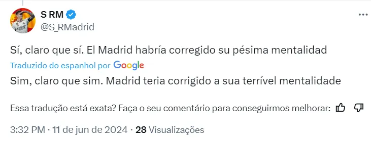 “Claro que sim. O Real Madrid teria corrigido a sua terrível mentalidade”, disse outro espanhol. O que se sabe é que Neymar jamais jogará na capital da Espanha, uma vez que está com uma idade alta, em baixa e seu salário é superior a qualquer jogador do time de Carlo Ancelotti.