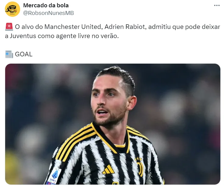 O time italiano está ciente da situação do meio-campista, mas não conversa, ainda, para um renovação de contrato. Na carreira, Rabiot soma uma boa passagem pelo PSG.
