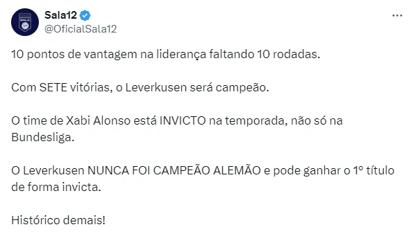 No entanto, no momento, o ex-volante segue totalmente focado no Leverkusen, que caminha a passos largos para ser o grande campeão da Bundesliga nesta temporada.