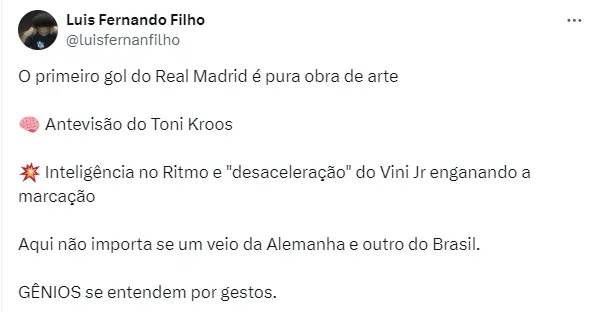 Assim, Vini encerrou a mágica noite com dois gols marcados e uma grande partida realizada. Agora, a vaga para a grande final será decidida nos domínios merengues.