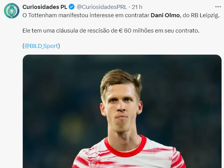 A cláusula de Dani Olmo com o Leipzig é de 60 milhões de euros. Esse valor é considerável para o Manchester City, que já trabalhava diante de estudados para pagar tal valor.