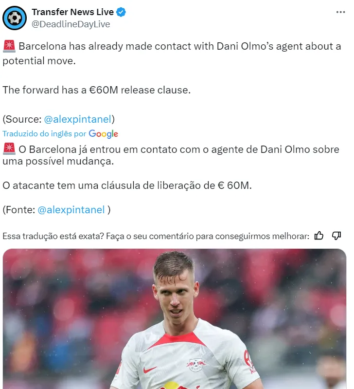 A preferência de Dani Olmo, segundo fontes da Espanha, segue sendo atuar pelo Barcelona. Ele é espanhol e sempre sonhou em brilhar com as cores do clube da Catalunha.