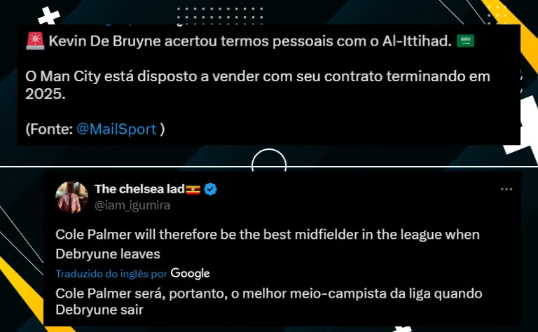 Bellingham por De Bruyne ou qualquer chance do inglês ir para Manchester está descartado. O Real Madrid não tem nenhuma intenção neste tipo de acordo e veta qualquer conversa com o rival.