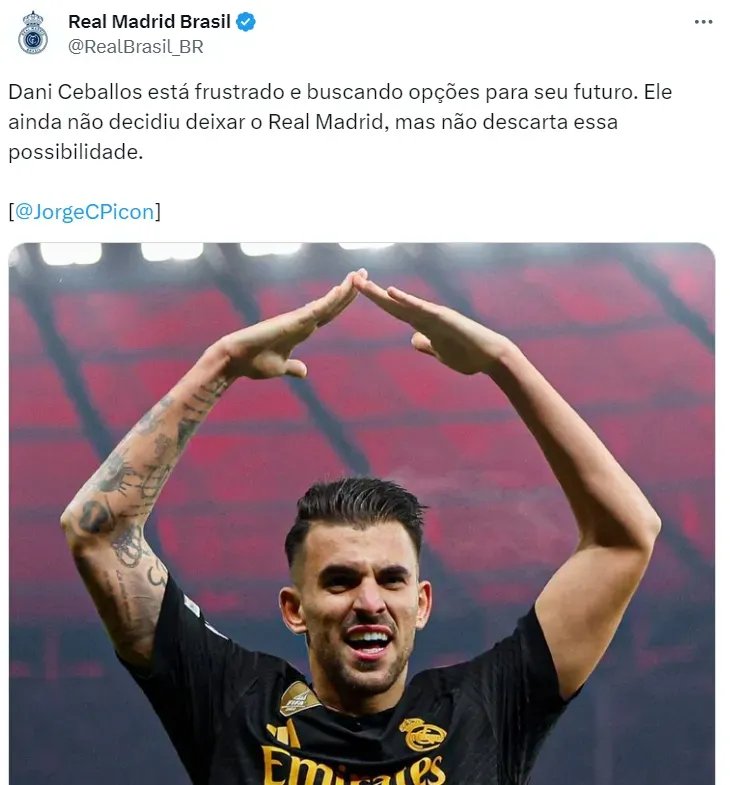 Dani Ceballos tem um grande contrato ainda para cumprir com as cores do Real Madrid – até 2027. A decisão de deixar o clube não está tomada, mas ele considera opções no mercado.