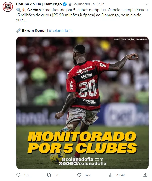 De acordo com o jornalista Ekrem Konur, Gerson tem sido alvo de interesse por parte de cinco clubes europeus. Com propostas possivelmente surgindo em janeiro, caso nada ocorra ainda neste ano, o Flamengo corre o risco de perder novamente seu talentoso volante.
