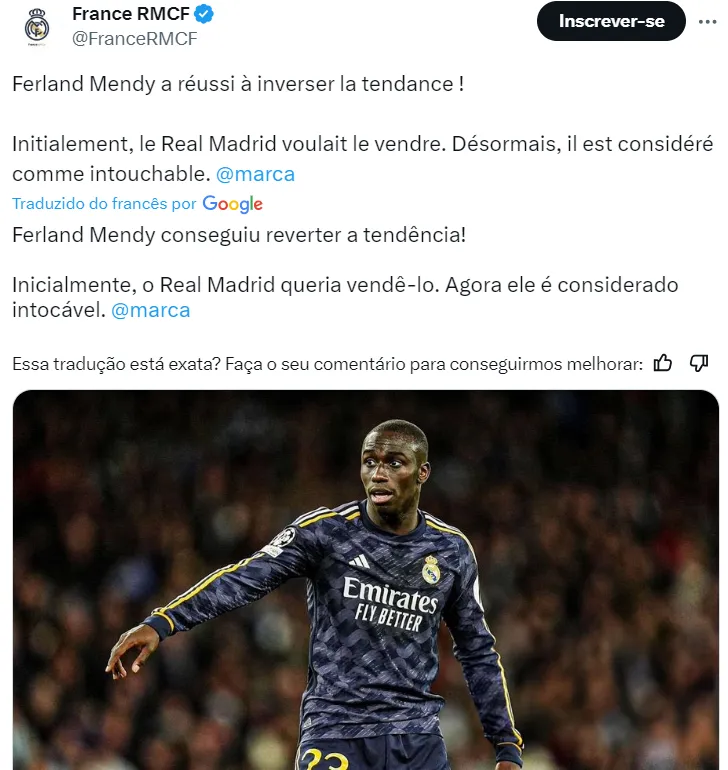 “Ele (Mendy), está livre em 2025. O Real Madrid quer renovar, mas, se não, o PSG fez uma oferta oficial para ele assinar sem custos quando seu contrato se expirar”, disse o jornalista.