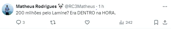 No entanto, o Barcelona recusou. A equipe espanhola entende que este não é o momento de vender Lamine Yamal. Além disso, a torcida não reagiria nada bem com tal notícia.