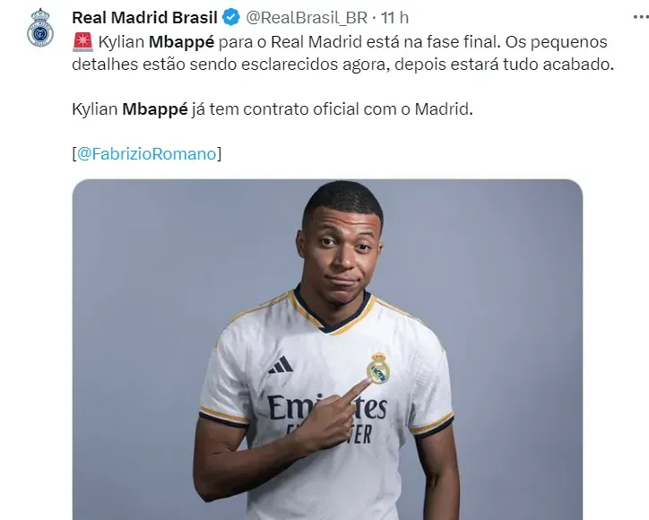 É quase certo que Mbappé deixará Paris para viver um novo desafio no futebol espanhol. Pelo menos, é certo que o camisa 7 irá deixar o time do PSG, conforme Fabrizio Romano.