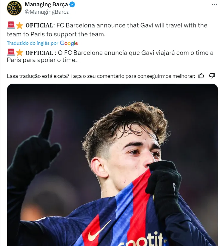 Grande rival do Barcelona nesta Champions League, o PSG segue interessado na contratação do jovem Gavi, visando a próxima temporada europeia, segundo informações do jornal L’equipe.