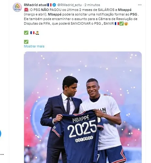 Em janeiro, a AFP divulgou que Mbappé optou por não embolsar parte dos bônus contratuais como forma de facilitar sua saída gratuita do PSG: “Com o acordo que fechei com o presidente neste verão, a minha decisão (sobre sair ou não) pouco importa. Conseguimos proteger todas as partes e preservar a tranquilidade do clube diante dos desafios que temos pela frente”, explicou Mbappé na época.