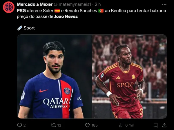 O espanhol está encantado pelo volante artilheiro do Benfica, João Neves. Aos 19 anos, o jogador pode ser trocado por dois atletas do Paris Saint-Germain para que os portugueses sejam convencidos do negócio.