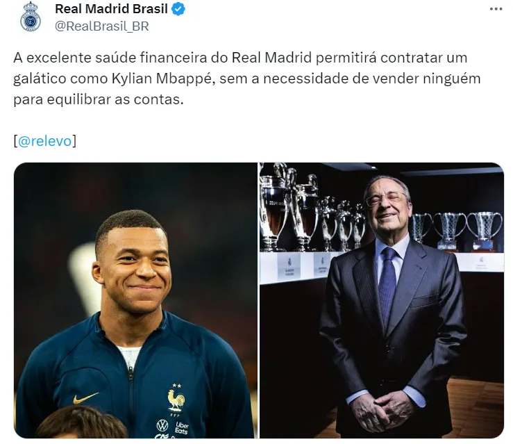 O Real Madrid é o melhor colocado para ter Mbappé. Existem conversas acontecendo, e a tendência é que o anuncio da contratação do camisa 7 aconteça após a passagem do PSG na Champions League.