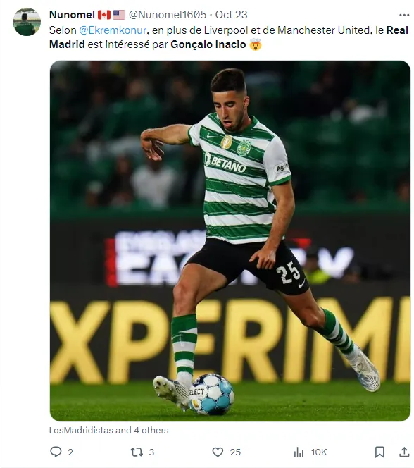 Gonçalo Inácio, zagueiro de 22 anos do Sporting, de Portugal, é avaliado em € 30 milhões de euros, com um contrato vigente até 2027 e uma cláusula de € 60 milhões de euros. O jovem tem chamado a atenção pela sua qualidade e potencial no campo, o que despertou o interesse do Real Madrid.