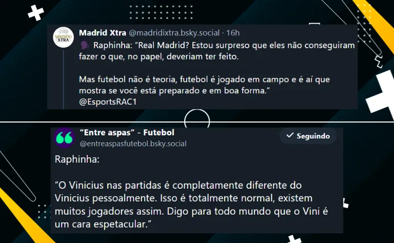 O brasileiro Raphinha, do Barcelona, mostrou bastante sinceridade ao falar sobre o maior rival do clube catalão, o temido Real Madrid de Mbappé e Vinicius Jr. A entrevista do atacante do Barça aconteceu para o portal Esports Rac1.
