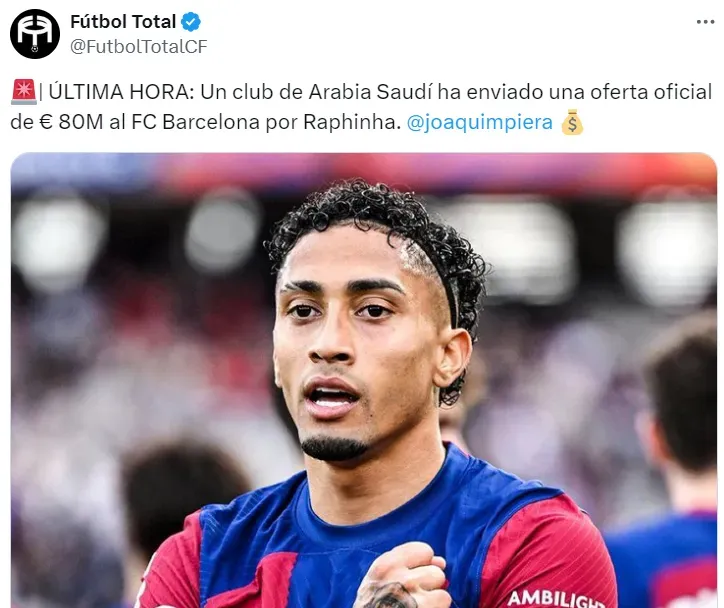 De acordo com outras fontes da Espanha, existe uma boa chance de Raphinha deixar o Barcelona, uma vez que, antes mesmo da oferta chegar ao clube, a diretoria pensava em vendê-lo.