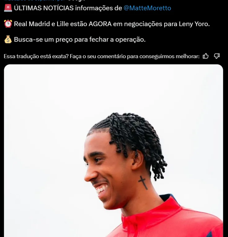 O Real Madrid mantém todo o seu foco na contratação do zagueiro Leny Yoro, de 18 anos de idade, atualmente no Lille, da França. Há outros nomes na mira merengue, como, por exemplo, Saliba, mas Yoro é a prioridade total.