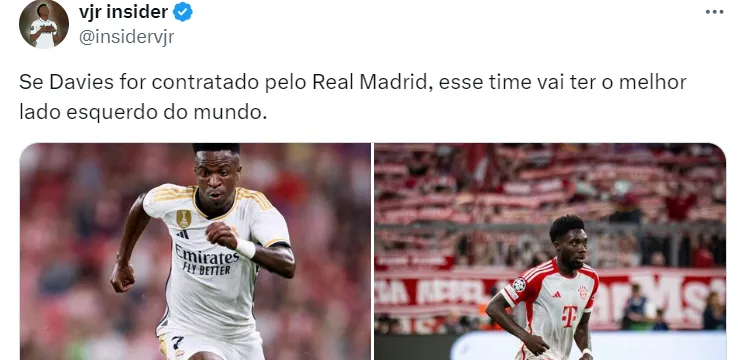 Com o acordo verbal com o jogador, o Real Madrid tenta negociar o acordo final com o Bayern de Munique. A ideia é ter Davies no final da temporada, mas o clube alemão não está tão disposto assim a fazer um negócio tão rápido.