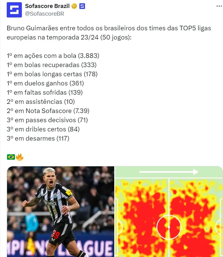 Segundo informações do portal fichajes.net e de outros veículos da Espanha, há uma disputa entre Real Madrid e Manchester City por Bruno Guimarães, do Newcastle e da Seleção Brasileira.