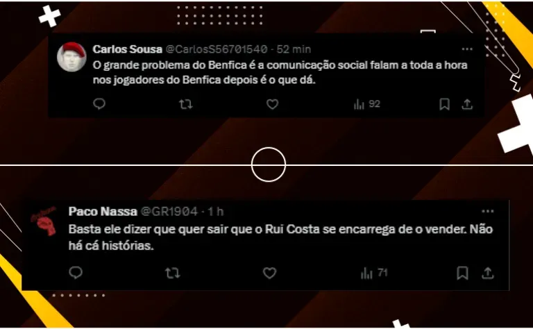 A jovem promessa, por sua vez, possui uma cláusula de rescisão de 100 milhões de euros (cerca de R$ 600 milhões). A despeito da multa, o Benfica busca uma negociação em torno de 75-80 milhões de euros (R$ 450-480 milhões).