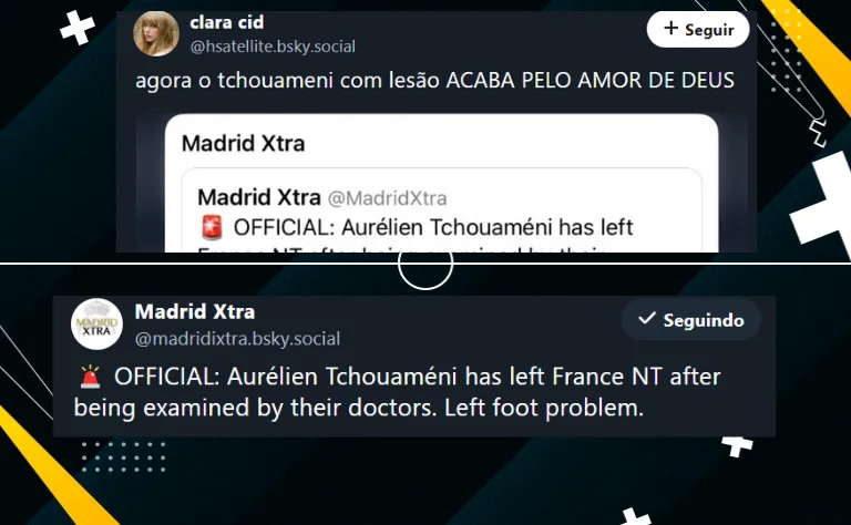 Uma lesão grave de Tchouaméni colocaria Ancelotti em situação inédita no Real Madrid, visto que o reserva do francês, Camavinga, também encontra-se lesionado neste momento. Além disso, o jovem não sabe o que é perder vestindo as cores Brancas há muito tempo. Sua perda seria imaginável neste momento.