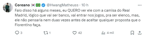 Ainda de acordo com a mesma fonte, Florentino Pérez quer ter um encontro com a joia quando for viajar para Manchester. O Real Madrid enfrentará, no próximo mês, o time azul da cidade.