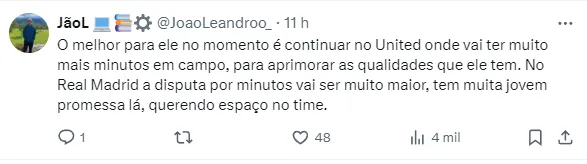 Isso porque, de acordo com o Defensa Central, da Espanha, o Real Madrid está interessado na contratação do argentino Alejandro Garnacho, que vem se destacando no Manchester United.